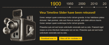 We are pleased to announce that we have released new module for Joomla 3.x: Vina Timeline Slider. Vina Timeline Slider is a really simple module that will take clean and semantic HTML code and turn it into an elegant and beautiful timeline/content slider. It's easy to manager (add more, edit, remove, reorder) Date/Issue, easy install and config module width, module background color, module background image, link color, text color and you also can parameterize the majority of attributes: speed, transparency, etc... You can use this module to show your products changelog/landmark, landmark of you team/life or schedules, historical events, deadlines, and more. We hope this simple module will helps you to give more life to the boring timelines. Check it out!