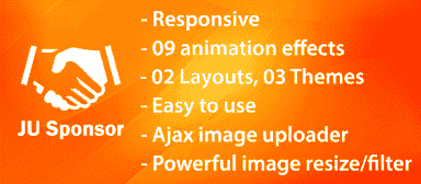 JU Sponsors helps to displays Client/Sponsor logos as slider. Allows to create custom themes, beautiful animation effects, many powerful functions and auto image resizing system with many image filters...
