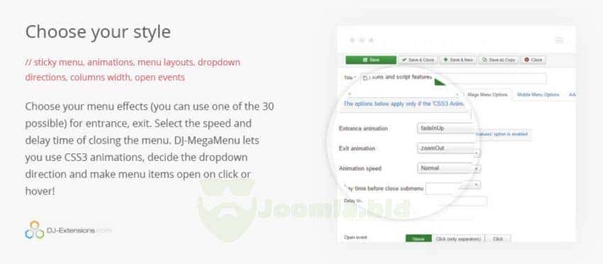 DJ Mega Menu is an accessible menu solution for Joomla. It gives you the possibility to build and set an advanced menu system. Decide how many columns per each menu you want to have, what modules, icons, and effects and use them in your menu items.