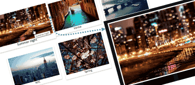 No more need to go in the component and go back in the article to manage images, you need just to create a pictures gallery (1 click), drag and drop pictures (1 click) from the article editor, and finally insert an image or a gallery (1 click).