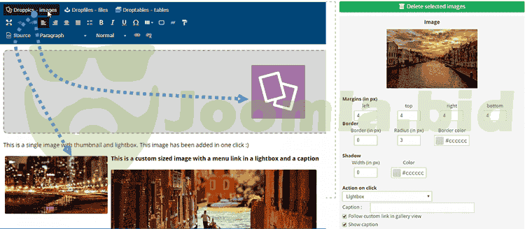Droppics is the easiest image and gallery manager for Joomla. Indeed, with Droppics you get a complete solution to manage gallery AND single image on your website.