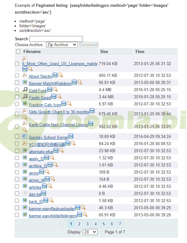 This is a flexible, simple-to-use extension that is used to list the contents of any folder. This extension comprises of a component, a content plugin and an editor extender plugin. You can easily specify what you need through profiles and/or through shortcode overrides. With the editor extender, placing your shortcode in the article is even easier than ever!