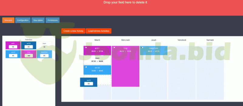 Easy Timetable allows you to build beautiful responsive Schedules thanks to a user friendly Drag & drop interface. Ideal for weekly recurring activities or schedule for multidays one-shot events.