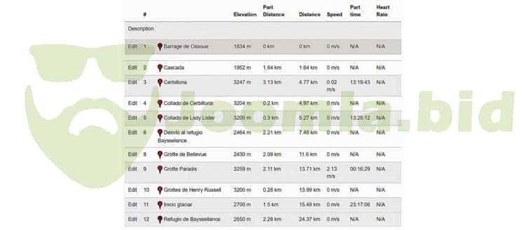 Way point tables - Displays useful information such as time, distance, statistics etc (GPX files only)
