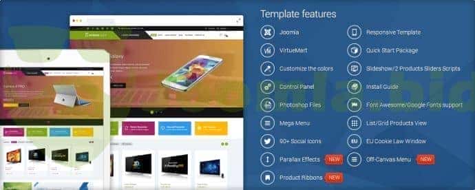 The design also comes with some great built-in features including a choice of 3 modern colour styles for you to choose from, product image slideshow, an eye catching mega menu style, custom sliding product module, a choice of 80 modules positions, 600+ Fonts to choose from and many more features which you can access using the powerful, built-in template control panel which allows you to easily setup and customize the theme to meet your exact needs.