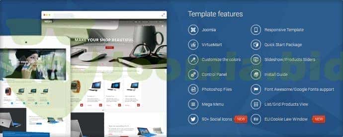 The Nevo Virtuemart template we have designed for the latest version of Joomla is the perfect choice of design for anyone who wants to create a professional, visually stunning, mobile friendly ecommerce website that will help you sell more products at your store and provide your visitors with a great shopping experience at your website.