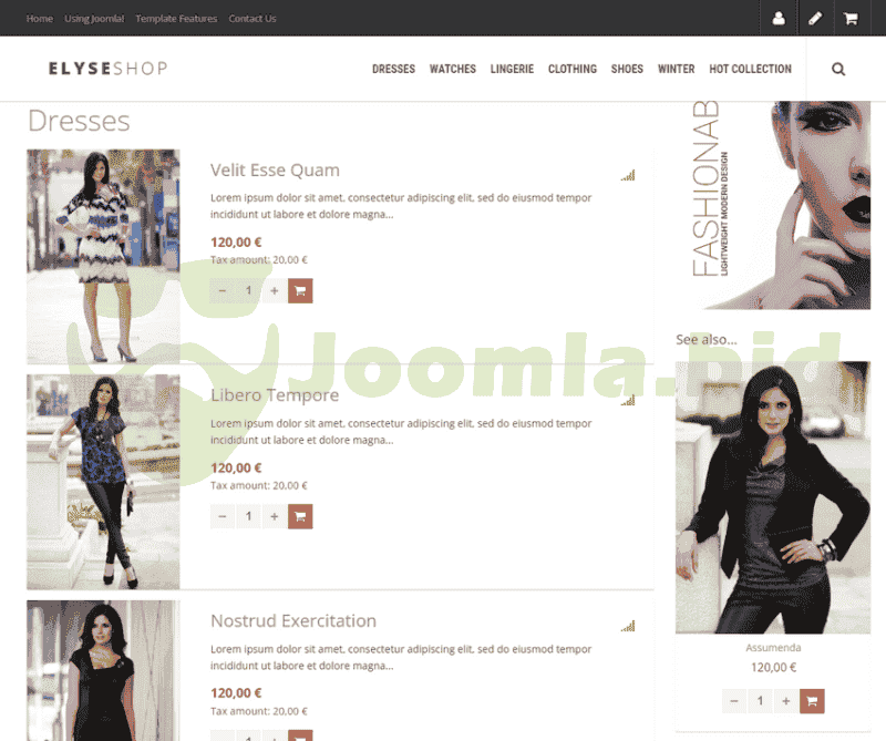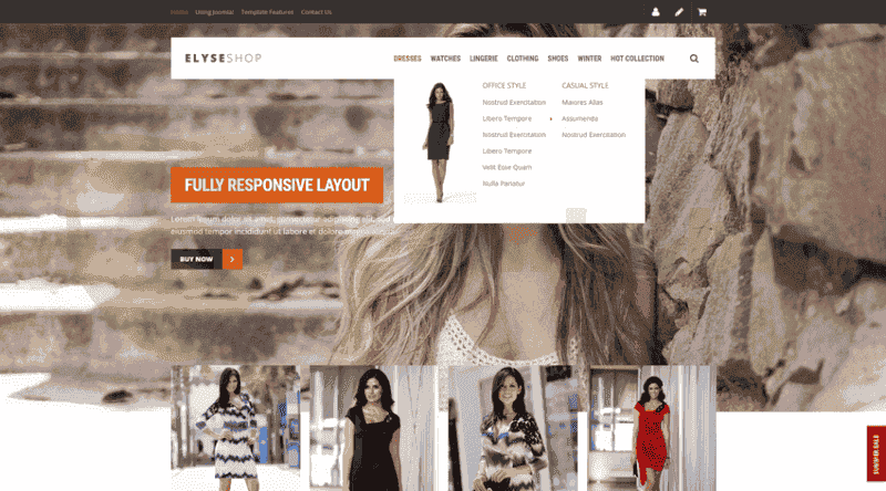 If you love fashion, then you will love the Elyse shop Virtuemart template we have designed at the website at the website. Elyse shop is a beautiful and stylish Joomla shopping cart template which is ideally suited for anyone who wants to build a modern, visually stunning fashion store.