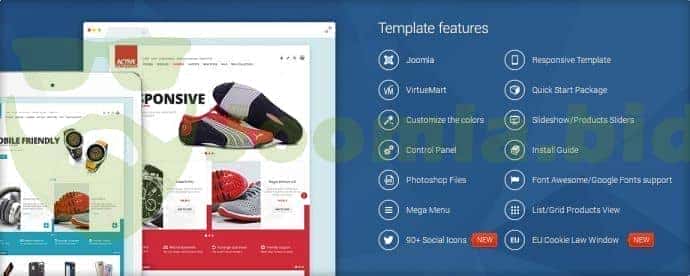 Active shopping is a clean, modern Virtuemart template for the latest version of Joomla which you can use to build a striking ecommerce website that will draw more customers to your business and help you sell more products.