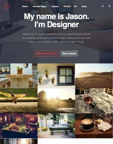 The portfolio responsive Joomla template for Joomla 3 - JA Jason is a revamp for your portfolio. It's a built-in T3 Framework template with Bootstrap 3, RTL Language Layout, K2 Component, and eCommerce ready with Hikashop component.