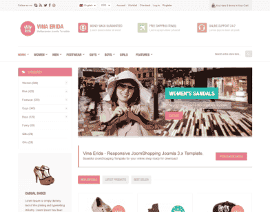 Vina Erida is responsive multipurpose Joomla 3.x Template powered by JoomShopping component. With 3 Home Page Layouts, Vina Erida is perfectly suited for any business websites, e-shops, portfolios, corporate, blogs, marketing or technology website, photo, services and others… Fully compatible with Joomla 3.5.1 and JoomShopping 4.13