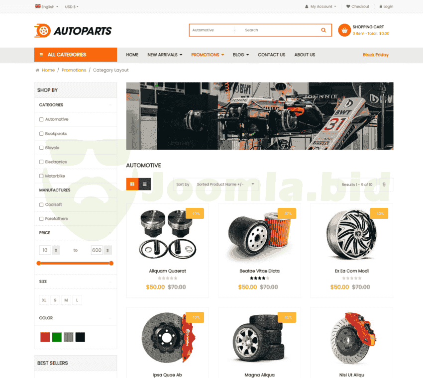 Sj Autoparts is a professional Auto Parts Joomla template with clean and modern design. The Auto Parts theme - Sj Autoparts is one of the best eCommerce solution with the combination of advantage in-house features and VirtueMartt 4 & 3...