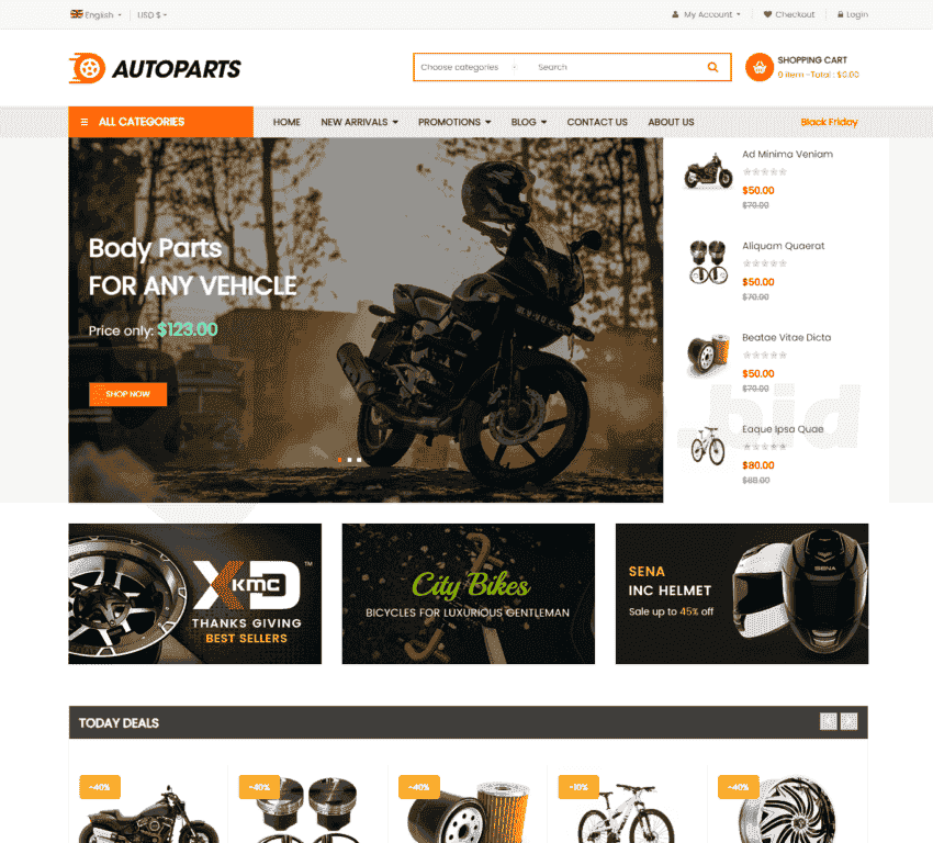 Sj Autoparts - Auto Parts, Tools, Equipments and Accessories Joomla template is powered with VirtueMart 4 component therefor it comes with lots of advanced eCommerce features and functions such as: Mega Menu, Drag & Drop Builder, Ajax Filter for VirtueMart, Mini Cart Pro for VirtueMart, Product Quickview for VirtueMart, RTL language, 65+ Useful ShortCodes built-in..... With Sj Autoparts, you can quickly setup your online store just in minutes without much coding knowledge.