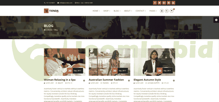 Tienda is a premium eCommerce Joomla theme With this template you can create an online store; stores of Fashion, Forniture, Jewelry, Gadgets, Watches, Makeup, shoes, Sportswear, Lingerie, and much more. Tienda was built with Virtuemart and Sp Page Builder (Real-time Frontend Site Building), powered by Bootstrap and modern web technologies (HTML5, CSS3, LESS). Tienda is absolutely responsive, has a product switcher, and the cart is optimized for phones.