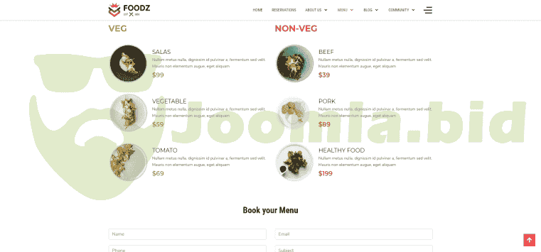 Responsive Design: Foodz is a Responsive Joomla Template . It supports Bootstrap, your template will adapt automatically to the screen size of the device and display all the content in an intuitive and simple way.