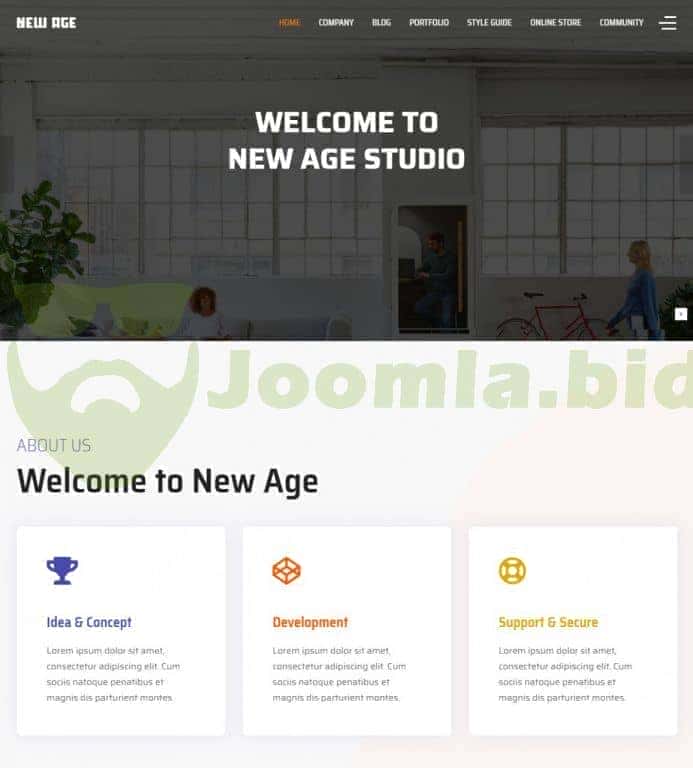 Today, I would like to introduce a new release of New Age Joomla template that is completely designed for creative persons, creative agencies. And it's flexible enough to match other businesses. With New Age, you can easily showcase business portfolios, keep blogging, sell your products online, build a community to connect other people, present your attributes or abilities, and even much more.
