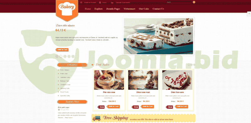 SJ Bakery - A special Joomla VirtueMart template is designed for bakery shops, fast food outlets, souvenir shops, Grocery stores...With responsive layout for Joomla 3.x, this Joomla template is optimized for both mobile and PC Websites.