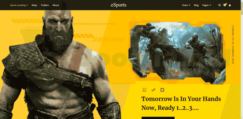 The Game Landing home variation of eSports is a fantastic landing page layout to introduce your games to the world. It is brilliantly crafted to display your game trailers, gameplay, reviews & ratings, launch platforms, release date, etc. This home variation will truly help you on your journey to success to make a strong first impression.