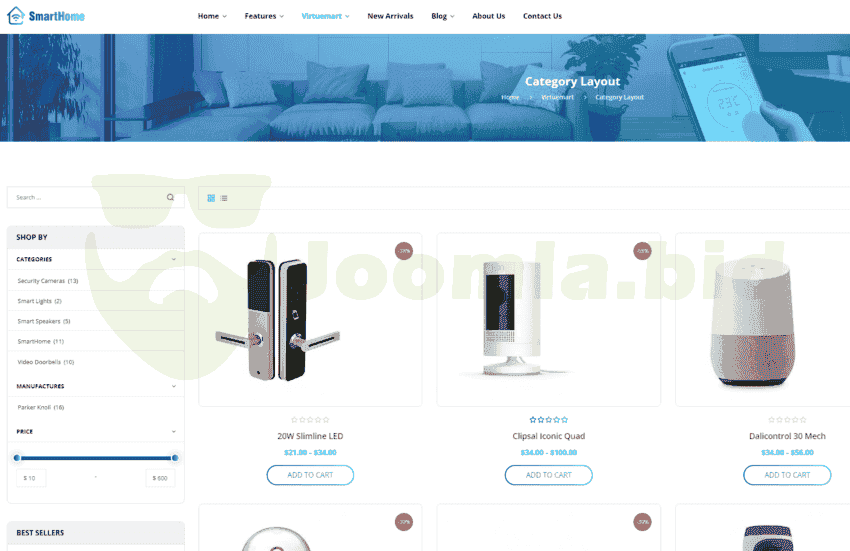 Sj SmartHome technology Joomla template bases on VirtueMart 4 component, then it comes with lots of advanced eCommerce features and functions such as: Ajax Filter for VirtueMart, Mini Cart Pro module, Product Quickview for VirtueMart, Ajax Add to Cart... This business Joomla template is responsive design, it looks great on tablets and mobile devices. With high-quality code, detailed documentation and Full Quickstart Package included, you can quickly setup your website just in minutes without much coding knowledge.