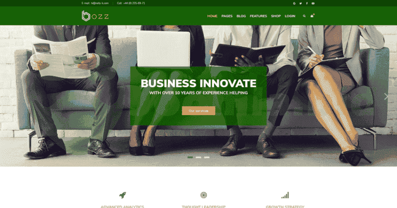 - Multiple Headers. Bozz comes with several header layouts to match your personal taste. One places the logo inside the navbar, the other one above it, so that big logos fit easily and maintain their proportions.