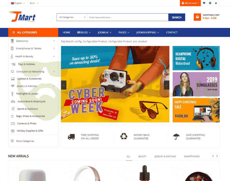 Sj JMart is a clean eCommerce Joomla template powered by JoomShopping component. JMart is best matched for fashion, technology, accessories or wide range of online store. The template - Sj JMart is based on Helix Framework integrated with dozens of high functionalities: : Mega Menu, Drag & Drop Builder, Product quickview, RTL language, 65+ Useful ShortCodes built-in.