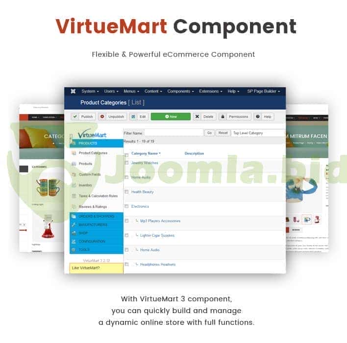 Sj Furni - eCommerce Joomla template is based on VirtueMart 3 component therefor it provides lots of advanced eCommerce features and functions such as: Joomla Mega Menu, Drag & Drop Builder, Ajax Filter for VirtueMart, Mini Cart for VirtueMart, Product Quickview for VirtueMart, RTL language, 65+ Useful ShortCodes built-in..... With Sj Furni, you can quickly setup your online store just in minutes without much coding knowledge.