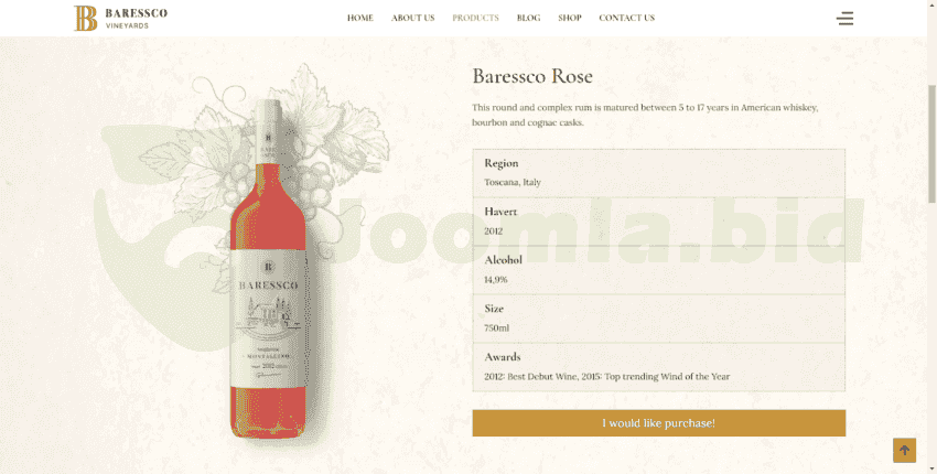 Baressco a specially brewed Winery Joomla template, is best suitable for Wine manufacturers, brewery company, distillery company, vineyard company.