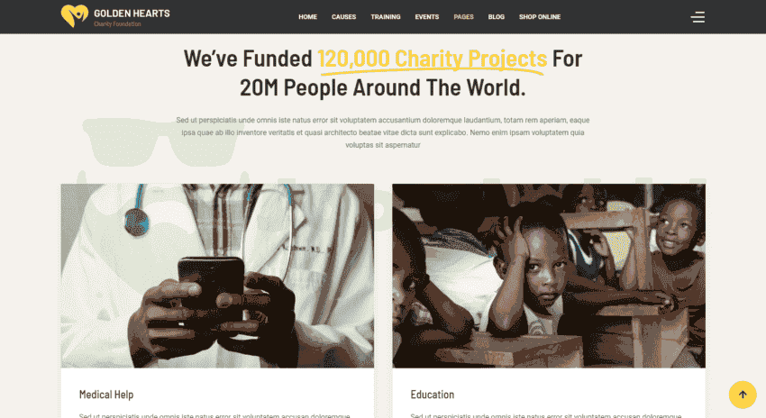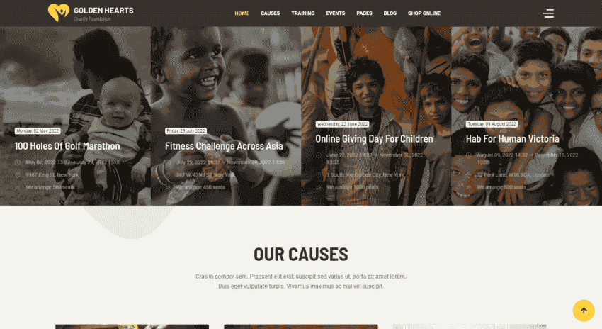 Golden Hearts contains everything you need: professional design homepages, amazing animations, creative headers, 60+ unique addon, layout builder, blogs, training, causes, contact, event, paragraph and other.