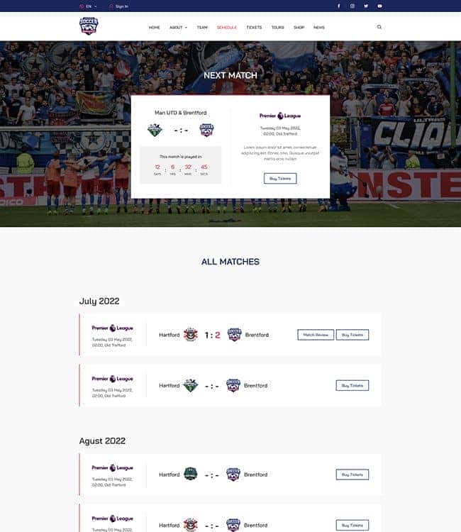 The fixture and result can be displayed flexibly to fit your expectation. Either a module on the home page to show the upcoming match, and recent match results or a dedicated page to show all the matches.