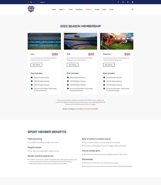 Easily create professional ticket and membership page for your sport and football club website using the pre-made styles of JA Advanced Custom HTML module.