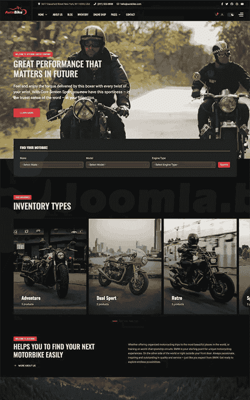 It is flexible to build sell/rental system for car, motorbike, yacht, boats, transportation. You can easily setup site with multiple page or landing page with SP Page Builder. Create inventory page with TZ Portfolio and Store Online with Hikashop.