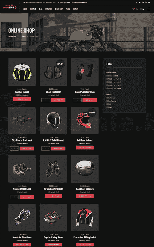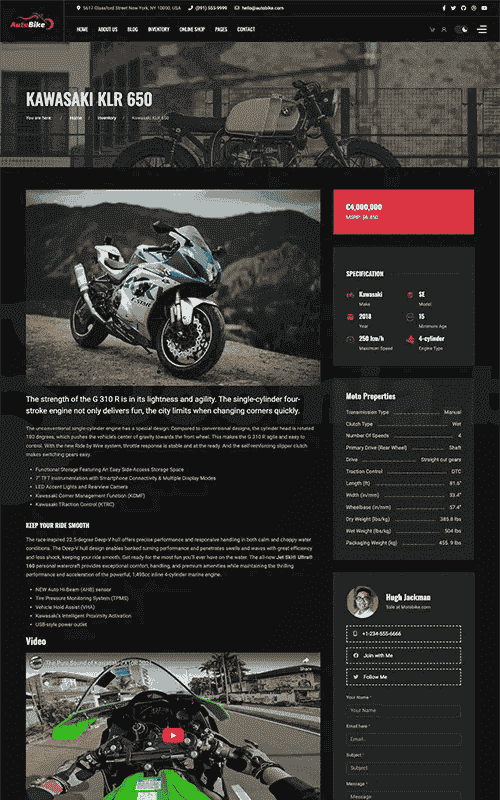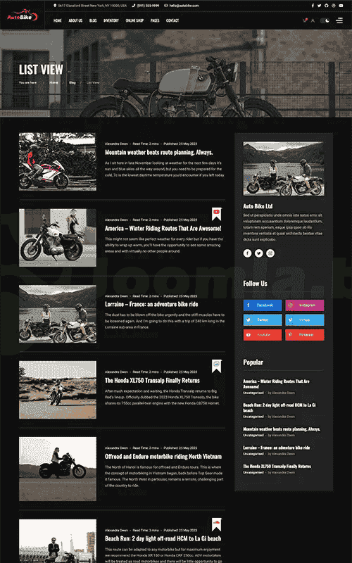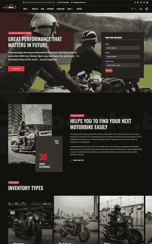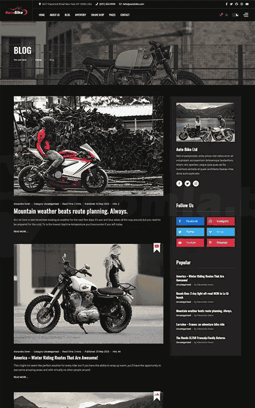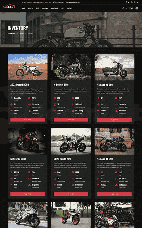 Inventory Layout Sell or Rent your vehicles Tell a story about the brand in your blog, introduce your products with many blog styles.