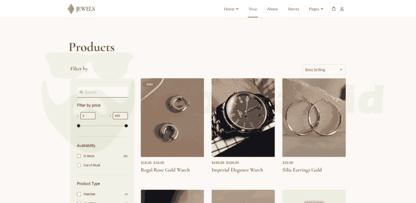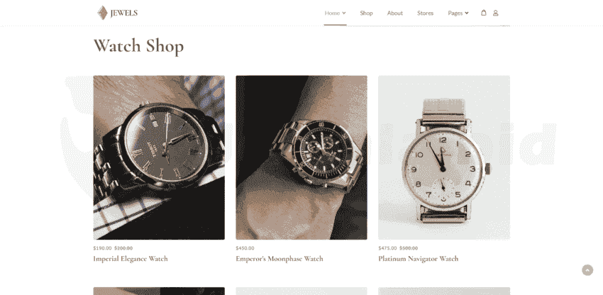 The shop page is designed for seamless product browsing, making it easy for your customers to explore and find the perfect piece of jewellery or watch.