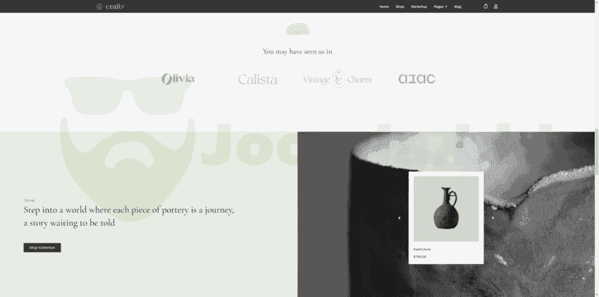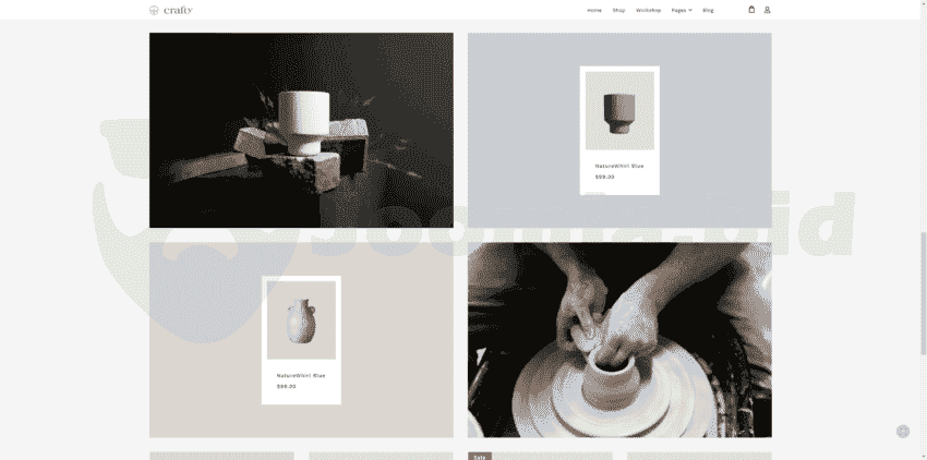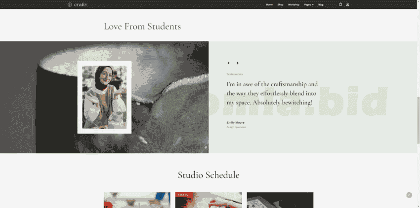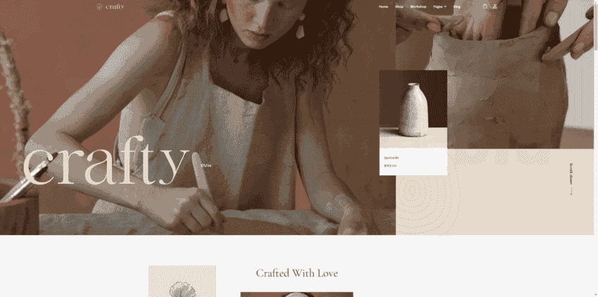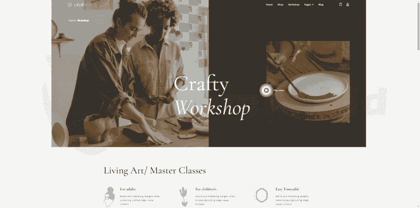 Get ready to instill a sense of tranquility into your audience through Crafty's visually calming home page. The subtle yet soothing color palette and layout are bound to stun your visitors and leave a lasting impression.