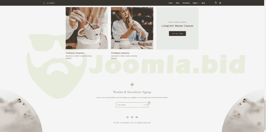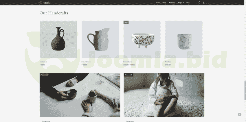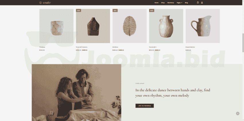 Looking for a Joomla template for your craft shop website that will showcase your expertise in craft artistry, and highlight insightful workshops? And what if your website also serves as a source of static income from your artistic creations? Well, look no further because the Crafty Joomla template has got you covered! Crafty is a carefully crafted Joomla template that is an ideal choice for niches related to crafts, arts, pottery, ceramic, or sculpture. Its ready-to-use pages allow you to create an ideal environment for your visitors, sparking curiosity for exploration and encouraging continuous scrolling. And the integration of EasyStore guarantees you can smoothly manage your online store and generate income.
