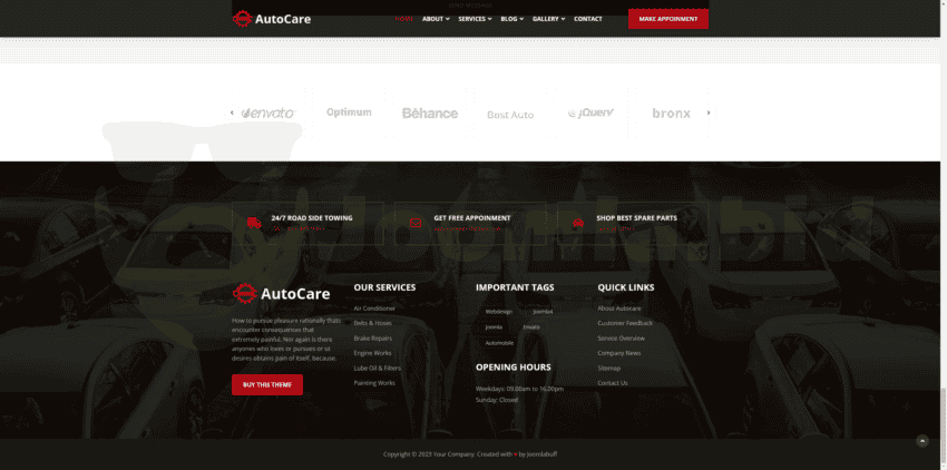 Auto Care is modern and good looking joomla template, perfect theme for car mechanic and auto mechanic. The Auto Care Template is built for Auto Mechanic, Car Repair Shops, Car Wash, Garages, Automobile Mechanicals, Mechanic Workshops, Auto Painting, Auto Centres and other Auto and Car related services and it is suitable for any kind of small business activity. Also suitable for Car Service Mot, Tyres, Brakes Hire, Car Rental, Auto Care, Maintenance, Vehicle Diagnostics, Auto Glass, Body Shops, Auto Inspections, Handyman, Service man. The design is very elegant and modern, and also very easy to customise.