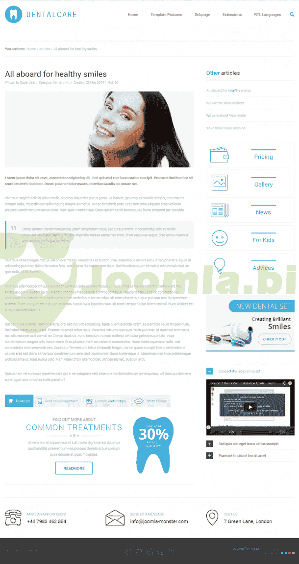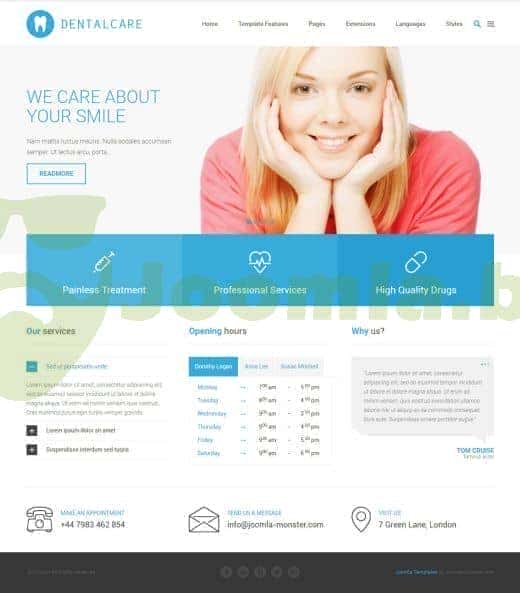 The demo of this site is addressed to a dental clinic but the flexibility of this template allows to replace all content for any doctor like a dentist, ophthalmologist, dermatologist, psychologist, pediatrician or nutritionist etc.