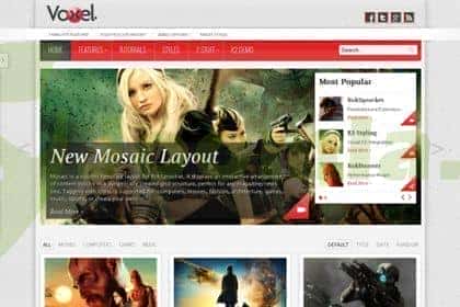 Voxel is a magazine orientated design. Its engaging style provides a rich back-drop. Mosaic is the functionality powerhouse behind the design direction, it displays an interactive arrangement of blocks in a dynamically created grid, perfect for magazine-esque content.