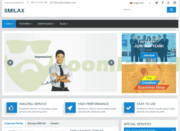 ZT Smilax is a modern and great looking Joomla template from ZooTemplate. This is fully responsive joomla template meaning it will look perfect in any devices. No matter the type of site you need, for business, ecommerce, travel, real estate, photography, or even a wedding, this theme does it all.