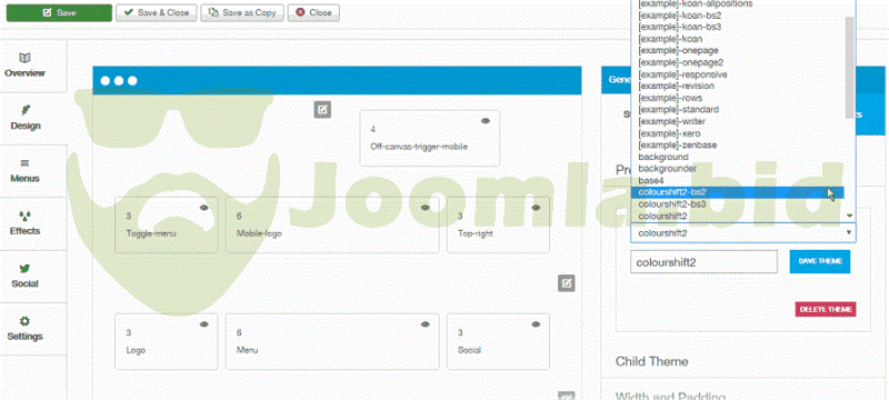 High performance out of the boxExtensive font control with access to a sensible Font Stack, Google fonts and Typekit.A selection of responsive menu options including Toggle Menu, Off canvas, Select and Stacked.Dropdown menu with 3 types of animated effects.Accordion menu to transform any vertical Joomla menu into an accordion or panel menu.Hidden Panel for displaying modules like user logins.Off canvas position for displaying less important content on the page but off the screen.Built in css3 effects to make each rows slide, bounce or fade in as the user scrolls.Handy tools like back to top buttons, sticky menus, image lazy load and more.Granular control over responsive breakpoints to target where your design breaks.Social sharing and social network integration.Developer friendly architecture, for users who want to bypass the interface and dig deep into code.Bootstrap2 and Bootstrap3 compatibility.Font Awesome 4 font icon support