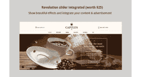 With awesome CSS skill, all images in this Responsive Coffee Joomla Template get a different kind of animation and images in Capulus homepage like have a living. It helps customer feel amazing when get into your website, engage customer to get into your shop.