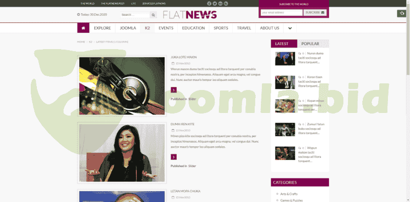 SJ Flat News - An exquisite Joomla template for Joomla 3.x, integrating the K2 component. Shines through with clean solid design, along with 7 color schemes and 3 types of layout, supporting RTL language and various content types. It allows you to present content in whatever way you like. SJ Flat News is a perfect choice for news/magazine site, news portal, blog and corporate websites..