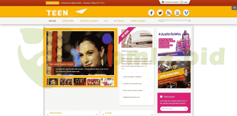 Sj Teen is a responsive Joomla template with colorful and young theme. SJ Teen would be suitable to modern sites for teenage people; with news and gossip; and with integration into a lot of social network for teenager communicating together: Facebook, Twitter...