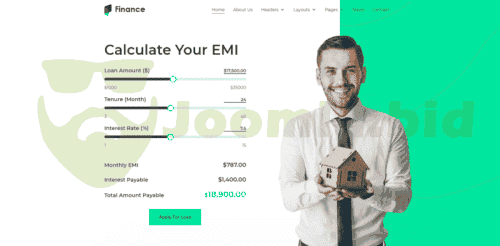 JD Finance Joomla template includes EMI calculator. We have developed this Joomla module specifically to enable your customers to calculate the monthly EMI against a specific loan amount.