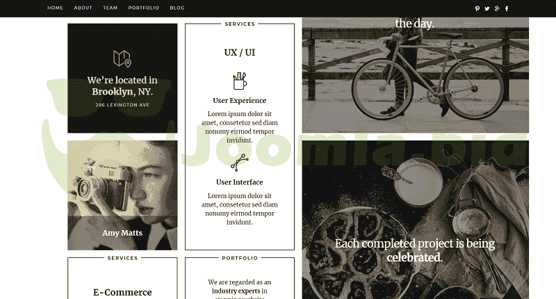 This unique Joomla template is responsive and retina-ready, with a trendy grid system layout. It is built with the new packery extension for isotope, which practically rearranges your tiles to fill empty spaces.