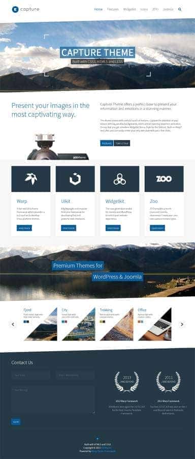 The joomla template was built with Azura – Drag and drop pagebuilder so you can easily customize to fit your needs, just replace images and texts. In the documentation that is included you’ll find instructions to setup your new website in no-time. Thank you for your interest and have fun with Capture!