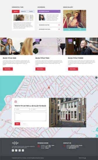 Hair salon template also includes some horizontal tabs and vertical accordion, fully developed with pure CSS. You can fill them with your data appropriate for your hair salon site (or different kind of site).