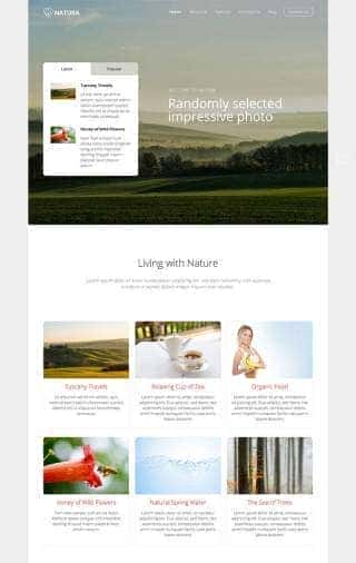 Hot Natura template for Joomla is recognizable by its dominant big headers on home and inner pages. These headers contain randomly selected images of beautiful landscapes and nature scenes. Natura template is based on a clean, responsive design with full support for normal and retina screen resolutions.