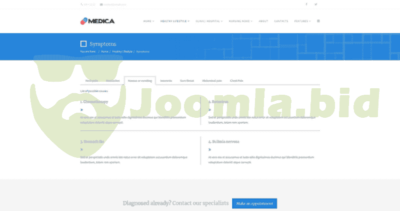 Medica is a complete medical/ healthcare responsive Joomla template equipped with everything you need to create your modern and fully functional site. In the Demo you will find 12 preset color variations that will perfectly suit your needs. Medica is also equipped with Font Awesome, Revolution Slider, Widgetkit Lite and Roksprocket. PBBooking is completing Medica by bringing easy way for your customers to book/ schedule their appointments.