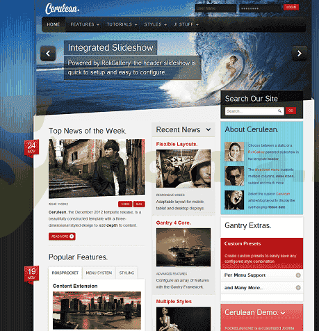Cerulean is a beautifully constructed three-dimensional template, with its bold shadows around the wrapper, and forward directional right angled graphics. The preset backgrounds match the mainbody style to create an intricate and seamless visual experience.