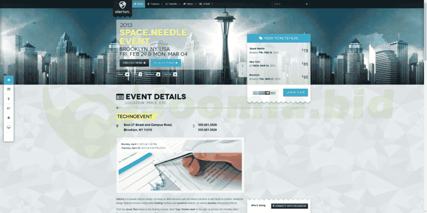 RokSprocket is a powerful switchblade content display extension, that has multiple, pre-built layout modes. The extension also includes a custom administrative interface for quick and easy configuration. Alerion showcases template styling for Features, Lists, and Tabs.